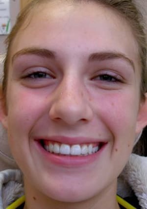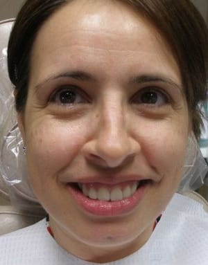 Her lateral incisors were too small so there were large spaces between her other front teeth. She also didn’t like how her teeth were rotated and crooked. We were able to fix that very quickly with no numbness required. Her Empress veneered lateral incisors blend perfectly with her other teeth in size and shade. She is so excited and confident now with her new smile!