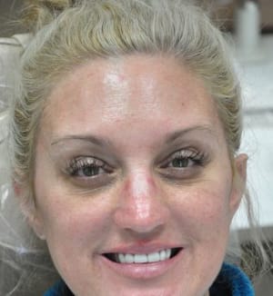 This young lady is a very picky cosmetologist. She wanted to have the spots on her teeth corrected as well as have her teeth whiter. We began with “White and Brite” to Whiten her teeth several shades. Then we placed Empress Veneers on her 4 front teeth matching the bleaching shade she attained with the “White and Brite.” This process took about a month start to finish, and the results are stunning.